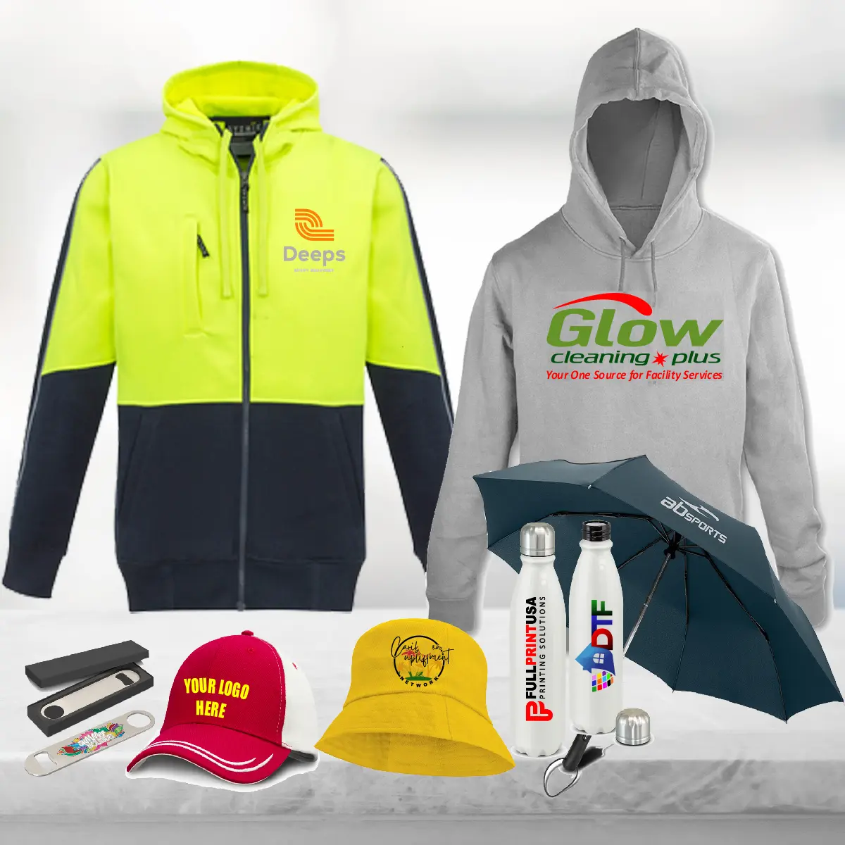 Our DTF prints are ideal for T-shirts, polo shirts, hoodies, sweatshirts, caps, visors, and a wide range of promotional items such as tote bags, backpacks, uniforms, and more. This technology ensures consistent color accuracy, sharp details, and long-lasting results, making it one of the most versatile and reliable printing solutions for businesses, teams, brands, and merch creators.